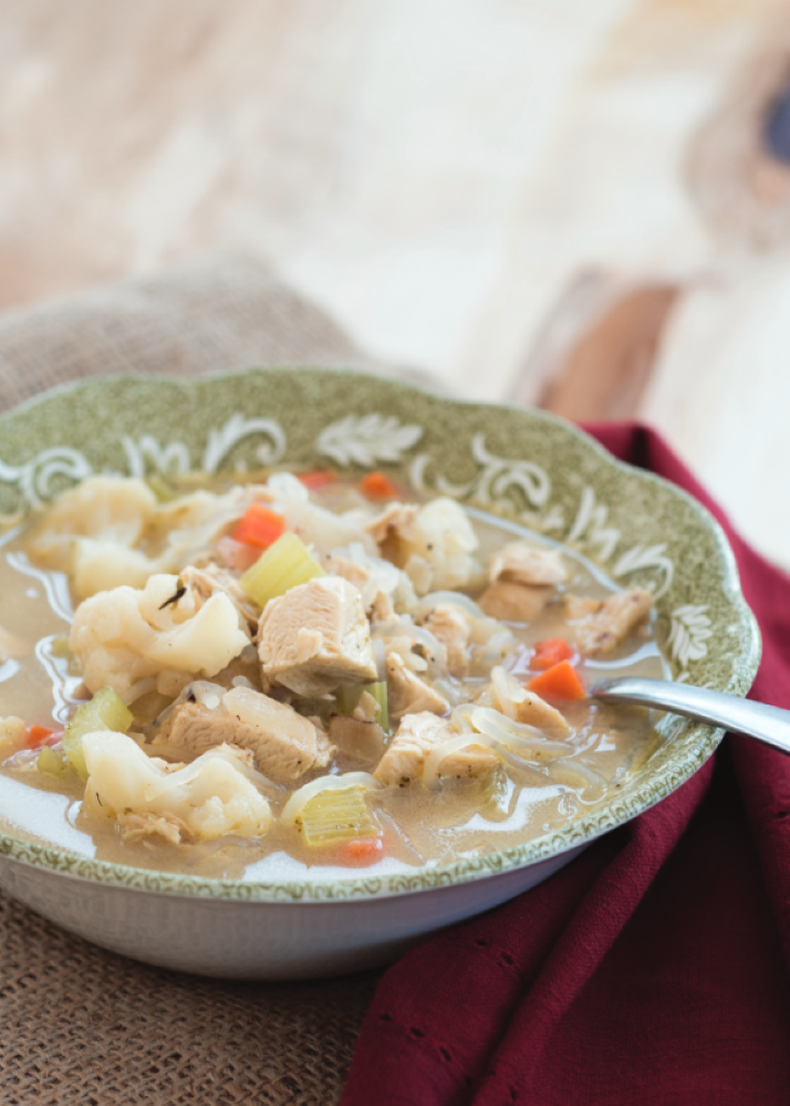 You can smash any of the leftover cauli pieces down a bit while the soup is simmering.