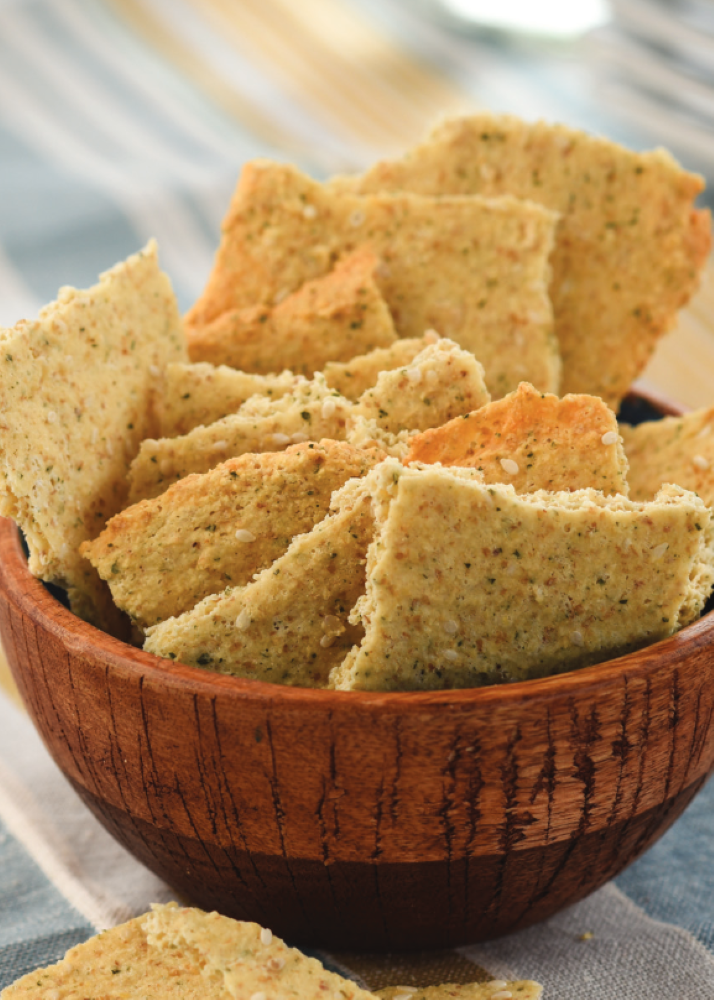 These crackers snap and crunch with a light and beautiful crisp. This recipe is found in the "Crackers, Crusts, Toppings & More" Chapter, on page 504 of the Trim Healthy Table Cookbook.