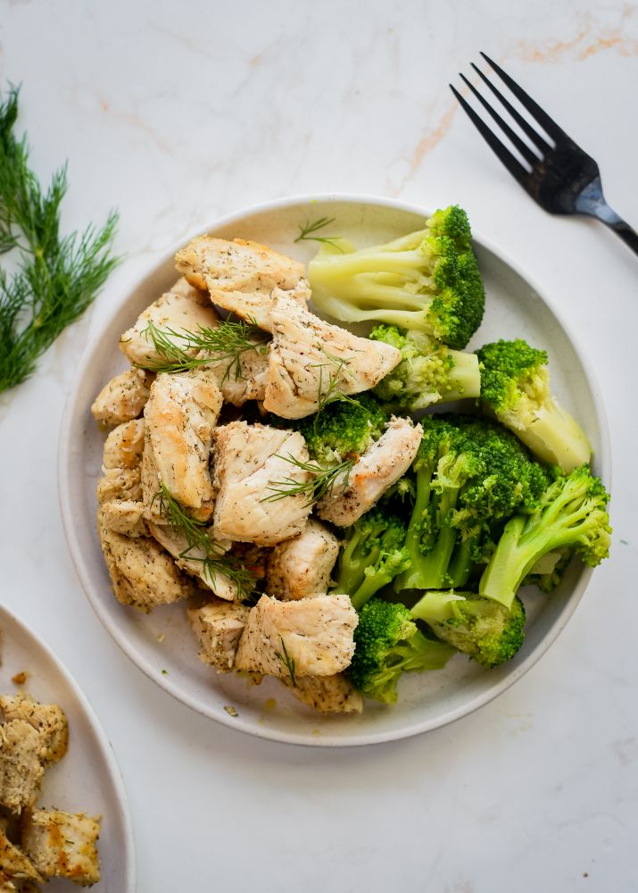 Get your Protein Nerd Level 3 status covered by the full standard amount of 4 – 6 ounces of chicken or by choosing Option 1 – garnish amount, which is 2 – 3 ounces of chicken breast and enjoying a half serving of powdered protein or close to a full serving of TH Optimized Collagen. Or… do no chicken at all and add a full serving of TH ESSENTIAL or another one of our Optimized Protein Powders to your meal.
