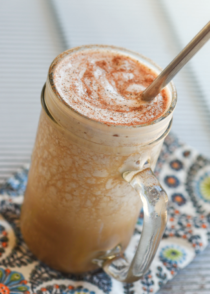 1. Put all the ingredients (except the ice and whey) in a blender and blend until smooth. Add the ice and blend again. Add the whey and blend to creamy whipped chai-flavored perfection.