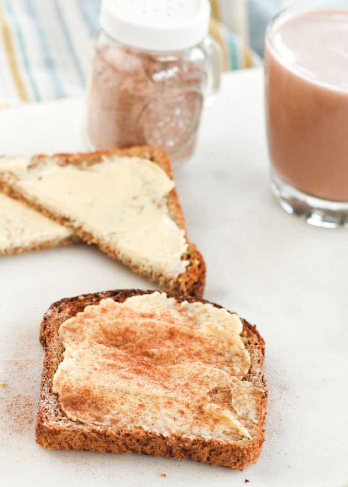 FOR DELICIOUS S-STYLE TOAST: Slather on plenty of butter or coconut oil, then sprinkle on your cinnamon sugar.