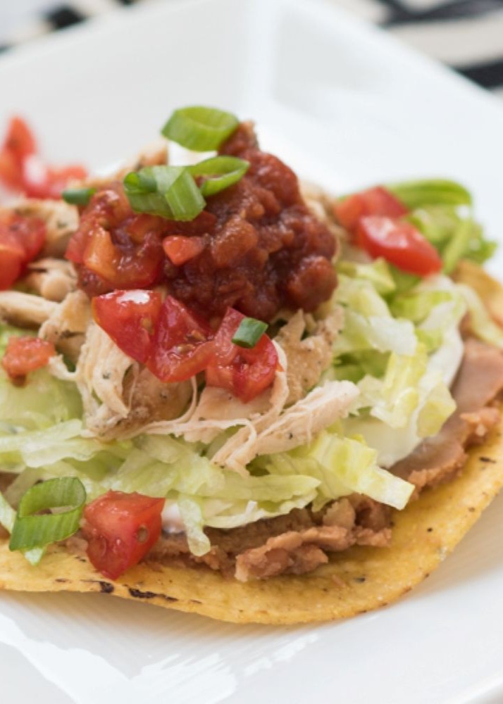 Nothing like the crunch of nachos or tostadas with the zesty flavors of Mexican goodies piled on top. This recipe is found in the "Hangry Meals for One" section of Trim Healthy Table on page 303.