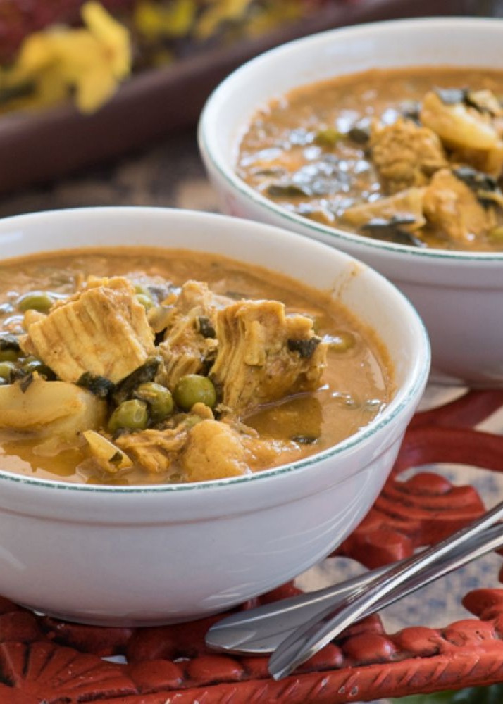 SERENE CHATS: Thick and fragrant with the alluring aroma of a spice market in a bustling town in India, this Trimmy Bisque fills your belly with warm, exotic flavors. It is super easy (take that, Pearl!)—just boil and blend and it really satisfies without the need for the usual huge mound of white rice that comes with many Indian dishes. This is not too spicy as written, so increase the cayenne if you like a spicier curry, or take it back to just 1⁄8 teaspoon if you’re not a spice head. This recipe is found in the "Big Eats Soups" section of Trim Healthy Table Cookbook, page 184. This recipe is a family-serve recipe that feeds 6 to 8 people.