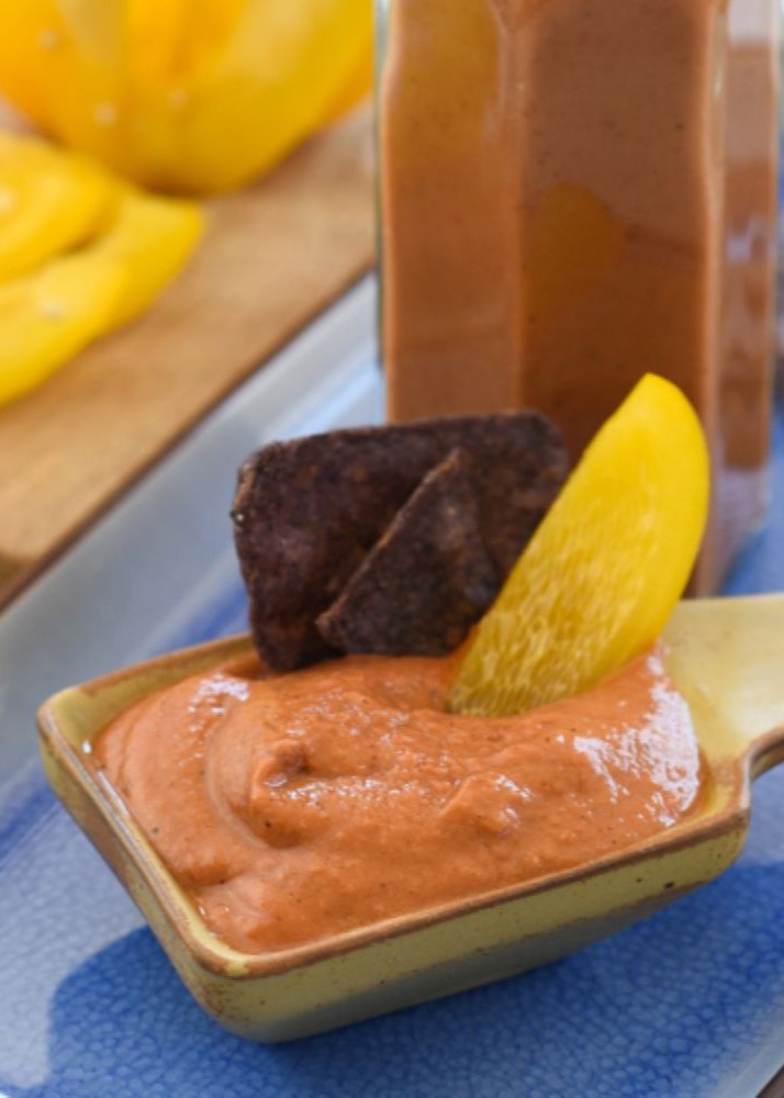 SERENE CHATS: This is an addictive sauce that has so many uses in my home. I keep heaps of the creamy version in the fridge (quadruple amounts) and put it on our table for almost every meal. My spiceloving kids scarf it down. It amps up protein and is a great flavorful addition to the side of your plate no matter what meal you are eating. Dip some of your food into it and your whole meal starts kickin’! If your children are not as spice loving as mine, don’t use the habanero. Try a dried mild chili pepper. This recipe is found in the “Sauces, Dressings, Dips & Other Odds and Ends” Chapter of Trim Healthy Table, page 518.