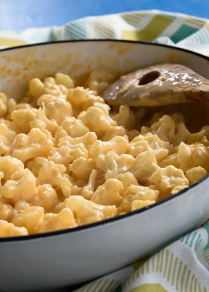 This cheese sauce can be served over cauliflower, as mentioned in this recipe, or over Dreamfield’s pasta. We prefer the whole food approach of using cauliflower as a more frequent option. This recipe can be found on Page 359.