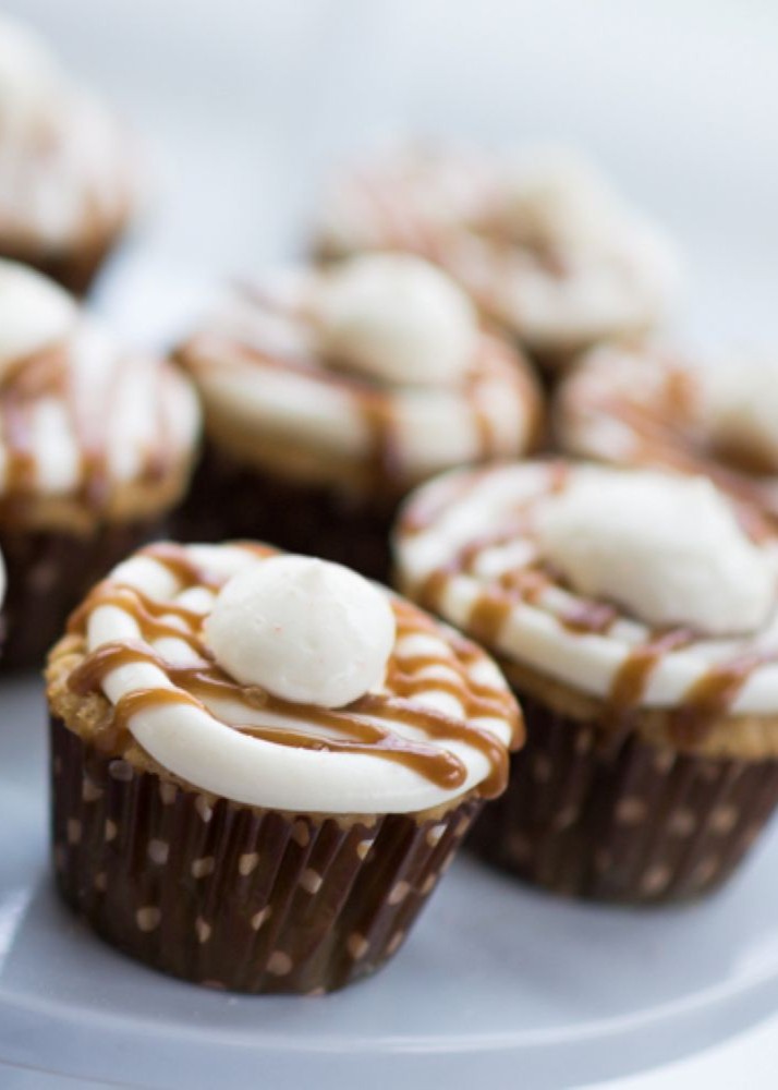 Make the frosting. Put all the frosting ingredients in a blender and blend until thickened. If choosing to make the caramel sauce, put butter, sweetener, and molasses in a small saucepan. Heat until bubbly over medium-high heat and allow to bubble for about 2 minutes, whisking constantly. Remove from the heat and add the salt and cream while whisking. Gently sprinkle in xanthan or Gluccie while continuing to stir. Allow the sauce to cool and thicken. Frost the cupcakes, drizzle the sauce over the top, then refrigerate for several hours (or overnight) before eating.