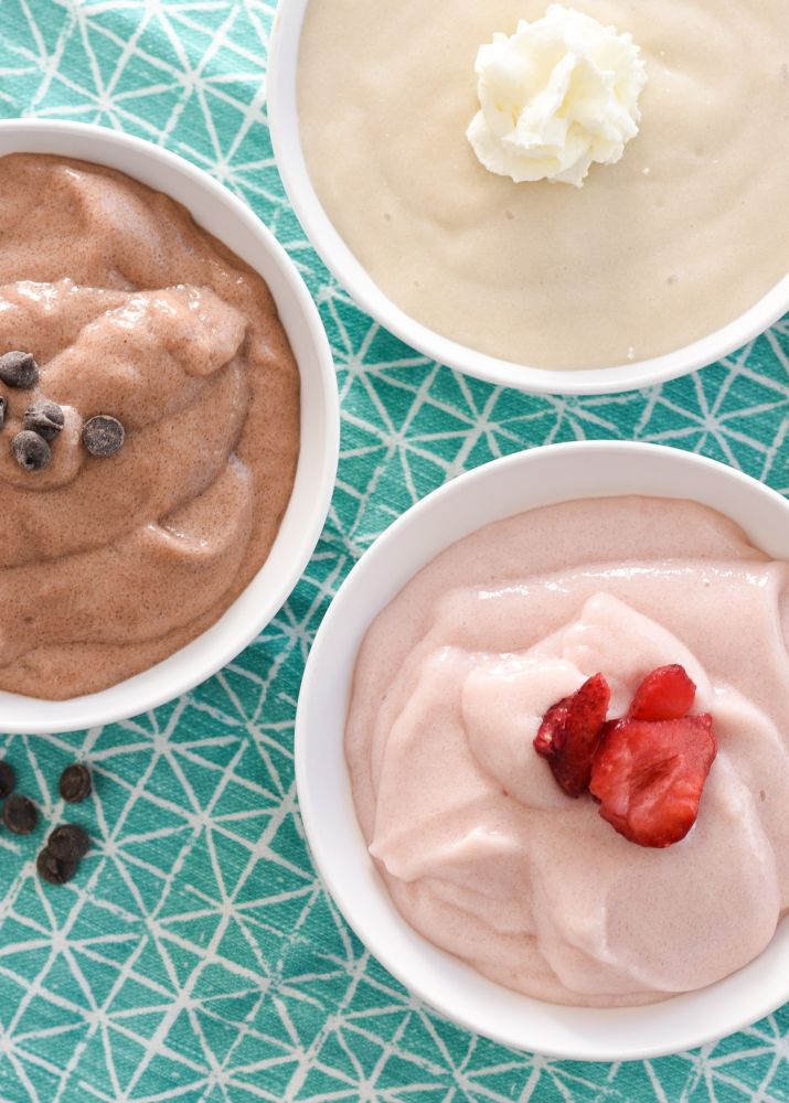 Sometimes, after a workout, you just don’t want to chug a smoothie, so this airy and simple mousse is perfect if you need a protein snack after your time over on the Tribe Healthy YouTube Membership. You can also enjoy this as an afternoon snack. Make just one for instant mousse satisfaction, or make up a bunch ahead of time for grab-and-go protein-rich snacks. Adding Optimized Whey Protein Powder provides you with a nourishing amount of protein. Try it in all three flavors: chocolate, strawberry, and vanilla! This recipe first appeared in the 12th Edition of the Trim Healthy Living Ezine and was recently updated with the launch of the TH Optimized Whey Protein Powders!!