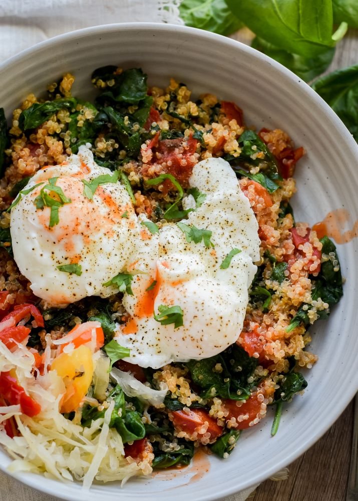 Make the Egg White Hack or poached or fried eggs, then set aside.
