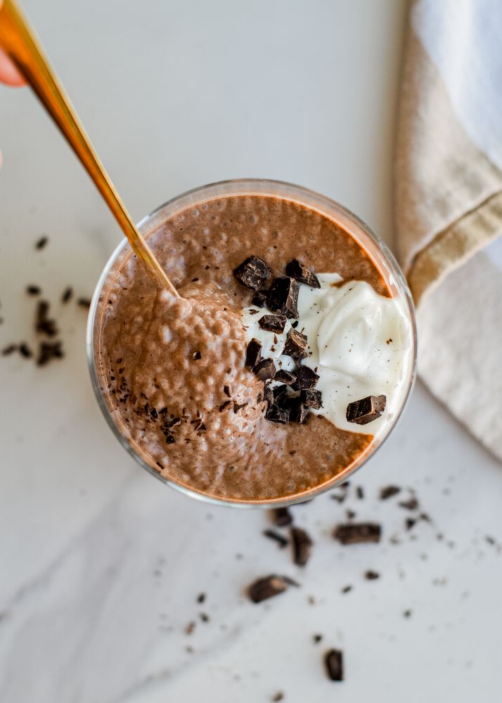 Put the egg whites and xanthan gum in a blender and blend on high for 1 minute, until thickened and frothy. Add all the other ingredients (except the chocolate chips) and blend well for another minute or so.