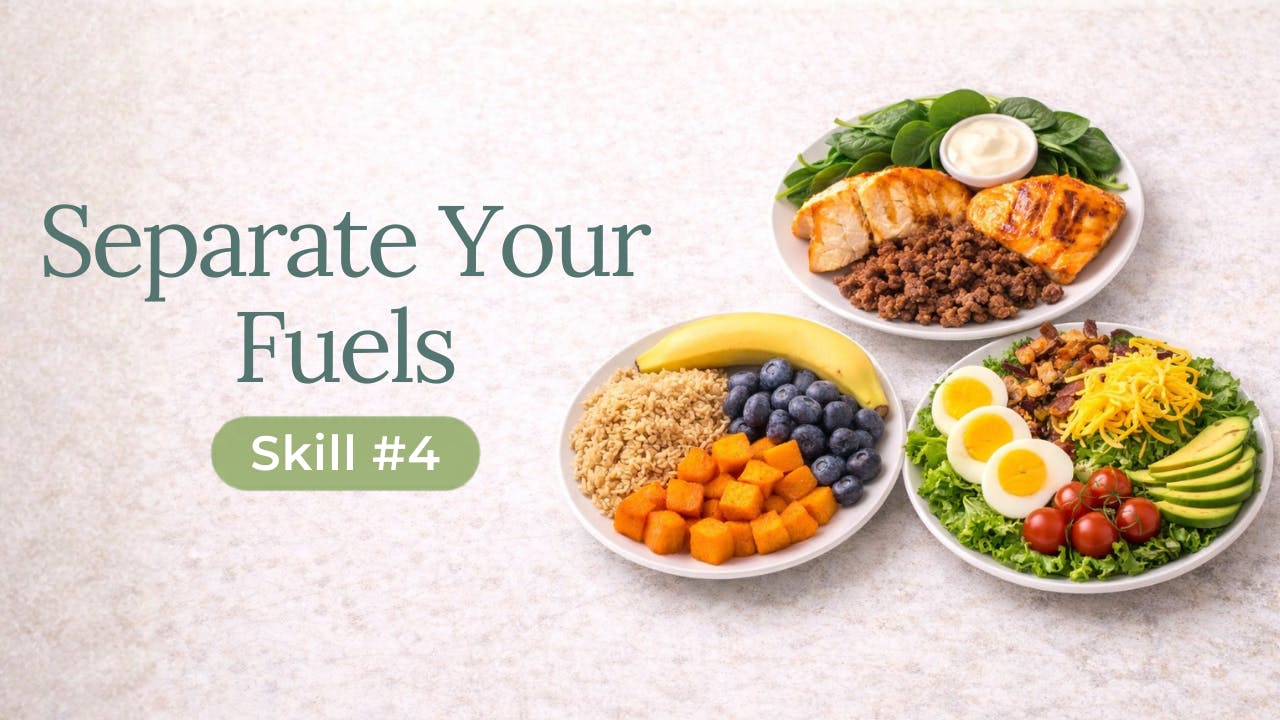 In this episode, we talk about Skill 4: Separate Your Fuels and how balancing carbs and fats in different meals can support healthy fat loss without cutting out entire food groups. We explain the difference between energizing meals, satisfying meals, and crossover meals, and how each one can fit into a sustainable approach to health.